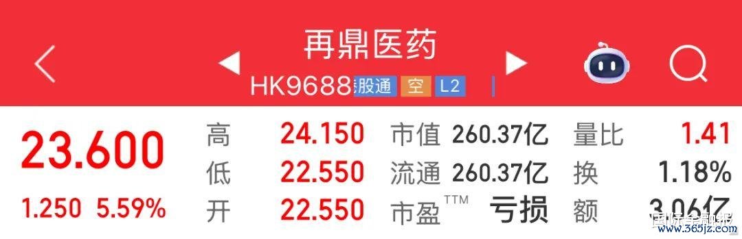5月9日,再鼎医药股价报收23.6港元,涨5.59%。