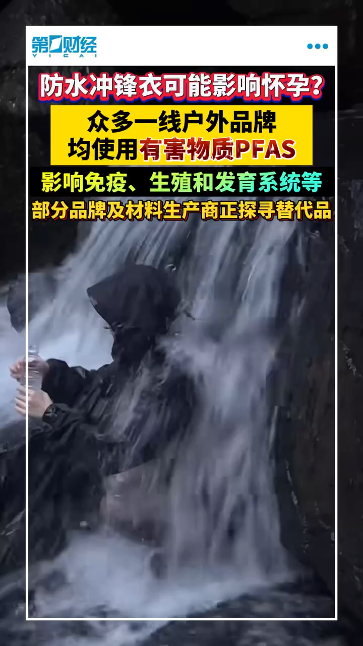 0 05-19 13:22防水冲锋衣可能影响怀孕?众多一线户外品牌均使用有害物质PFAS,影响免疫、生殖和发育系统等,部分品牌及材料生产商正探寻替代品